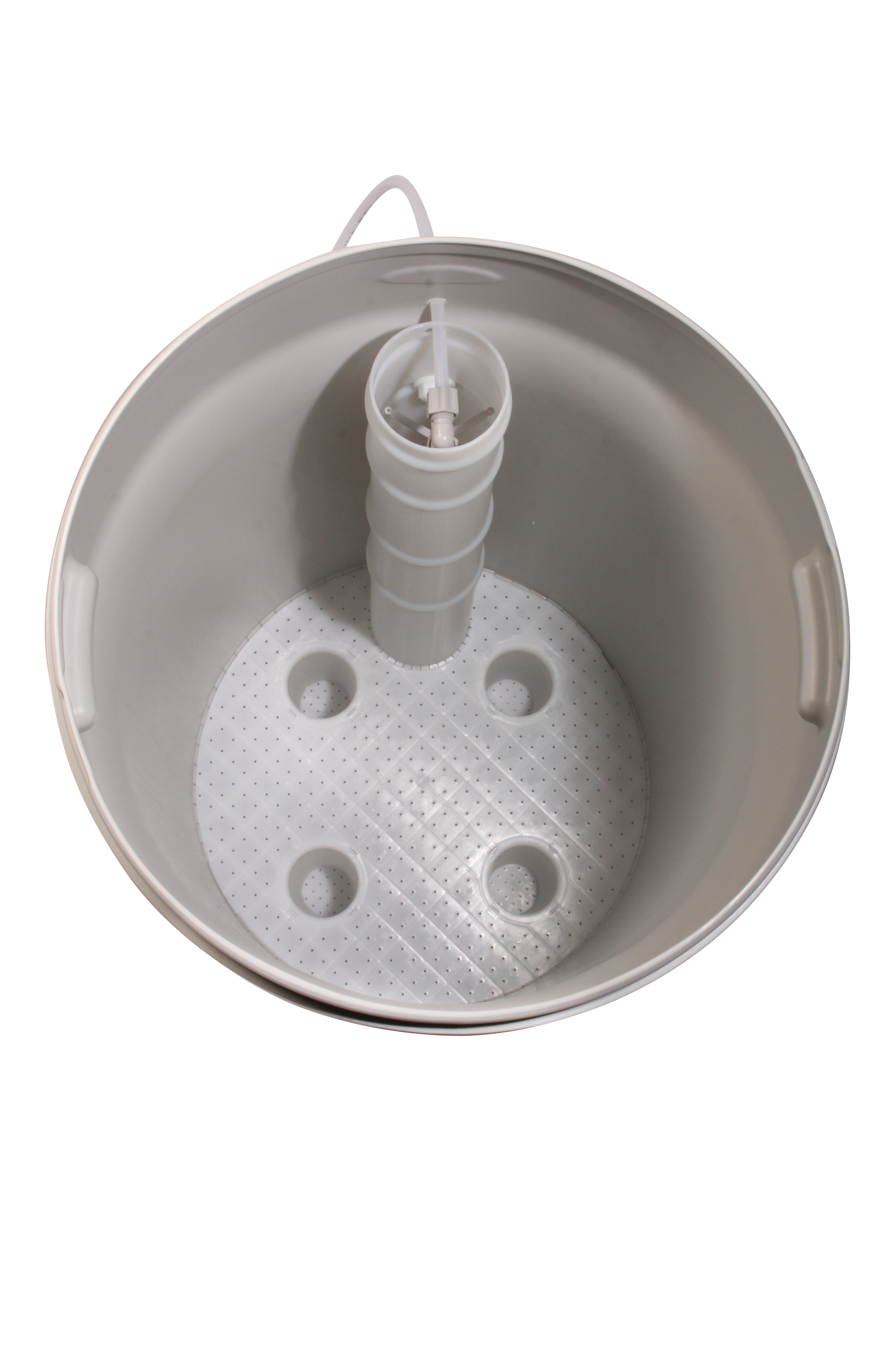 Der zylindrische PE-Solebehälter dient zur Herstellung und Aufbewahrung der Salzsole aus Salztabletten für Ionenaustauscher-Anlagen. Der Speicherbehälter bewahrt die Salzsole so lange auf bis die Ionenaustauscher-Anlage diese für die Regeneration benötigt. Der Vorratsbehälter besteht aus hochdichtem Polyethylen (PE) und besitzt ein Fassungsvermögen von 70 Litern. Durch die große runde Deckelöffnung ist der Solebehälter leicht zu befüllen und zu reinigen. Der Stülpdeckel verschließt einerseits den Behälter sehr gut, andererseits ist er leicht abnehmbar. Die durchschnittliche Wandstärke beträgt ca. 5 mm. Die Soletanks sind mit einem Siebboden für Salztabletten, einem Solerohr, einem Sicherheits-Schwimmerventil, einem Soleansaugschlauch 2.000 mm sowie mit einem Überlaufwinkel 3/8 Zoll, versehen.