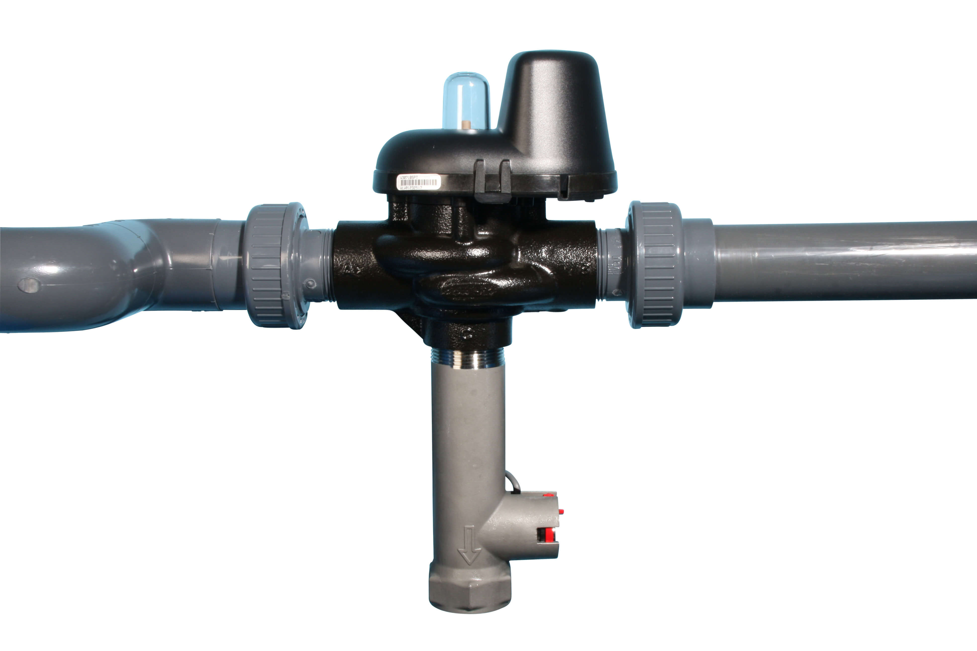 Das Zentralsteuerventil CLACK WS 1,5 CI wird für die Steuerung von Enthärtungs- und Enteisenungsanlagen, sowie zur Entmanganung und Entnitratisierung eingesetzt. Die durch eine PVC Verrohrung miteinander verbundenen Ventile (2x CLACK WS 1,5 CI) wurden als Steuerung für Druckflaschen in einer Doppelanlage konzipiert und arbeiten nach dem Pendelverfahren. Danach befindet sich immer eine der beiden GFK-Druckflaschen in Betrieb und die andere in Bereitschaft. Wenn die voreingestellte Kapazität der sich in Betrieb befindenden Druckflasche erreicht wird, leitet der Steuerkopf diese Druckflasche sofort in die Regenerationsphase (Reinigungszyklus) ein und schaltet automatisch auf die andere Druckflasche um. Der Steuerkopf besitzt eine einfach zu bedienende Micro-Prozessor-Steuerung mit einer Bedienung über vier Tasten. Das Multi-Funktions-Display mit Statusanzeige unterstützt metrische und amerikanische Einheiten. CLACK WS 1,5 CI ist aus Rotguss (schwarz lackiert) gefertigt und weist ein modulares robustes Material ohne Schrauben auf. Die Front ist aufgrund eines Clicksystems leicht abnehmbar und eine einfache Wartung ist somit gegeben.