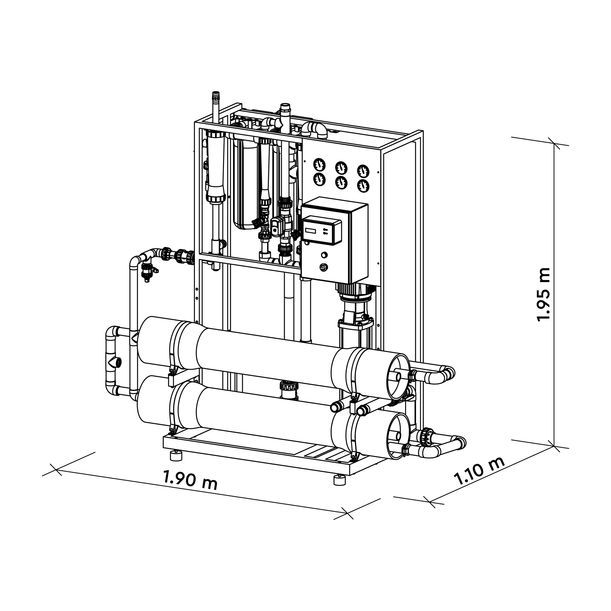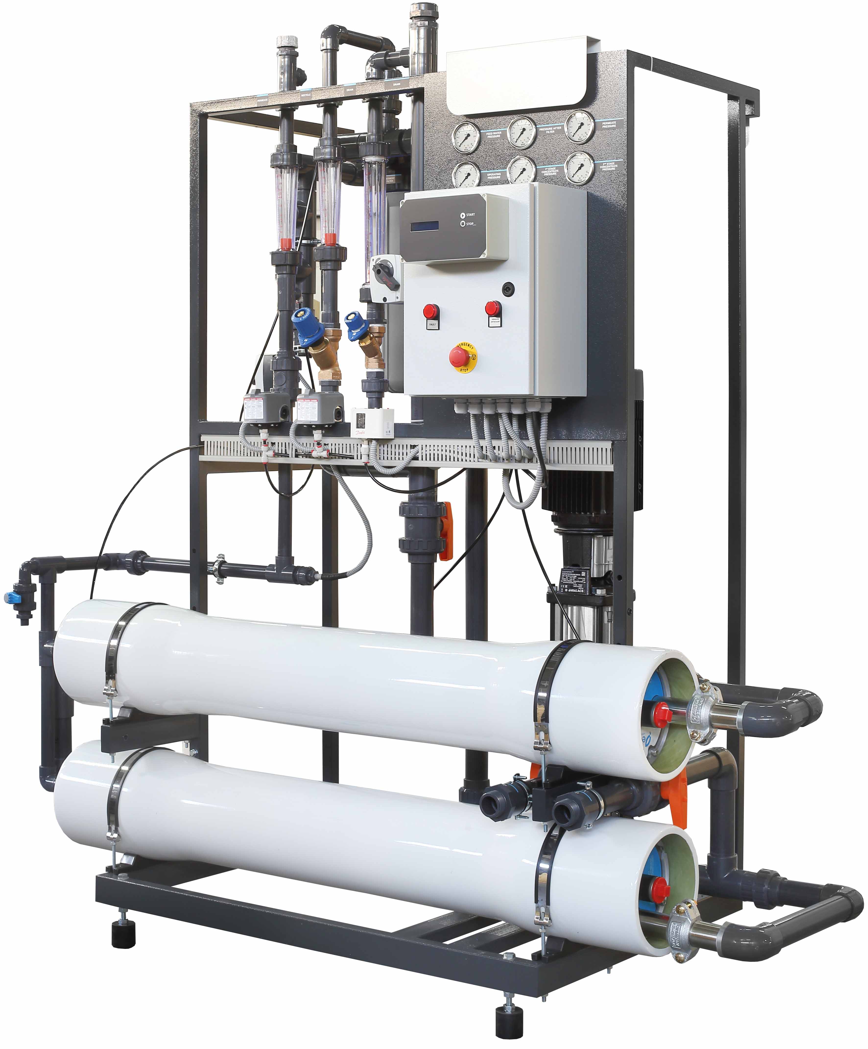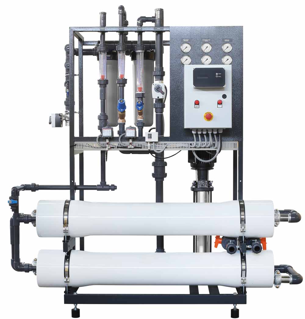 - Universeller Systemaufbau ermöglicht Anschlussmöglichkeiten von Permeatspülung und Rohwasserverschneidung