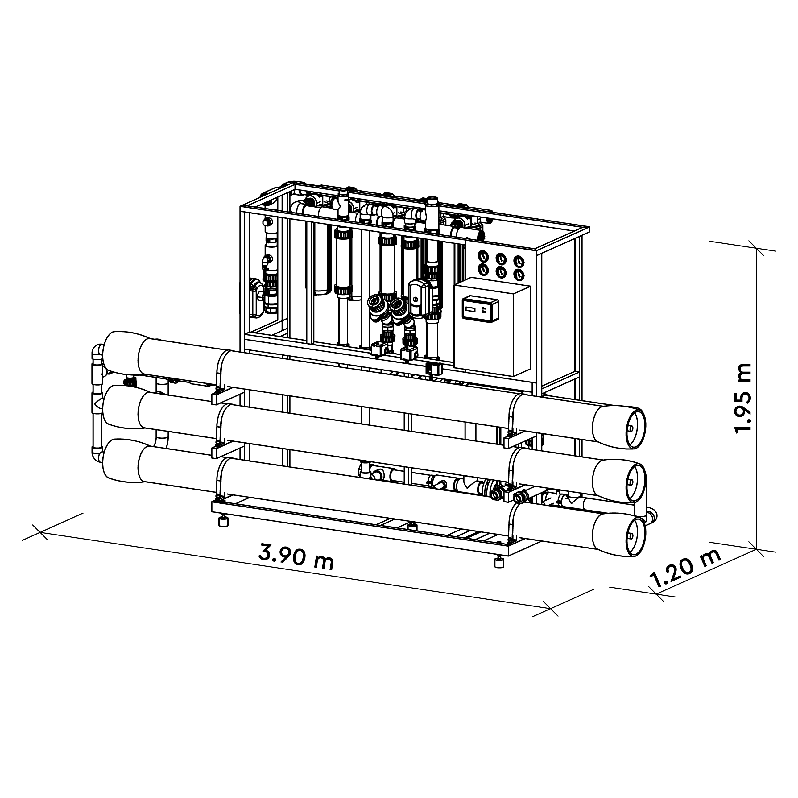 - Universeller Systemaufbau ermöglicht Anschlussmöglichkeiten von Permeatspülung und Rohwasserverschneidung