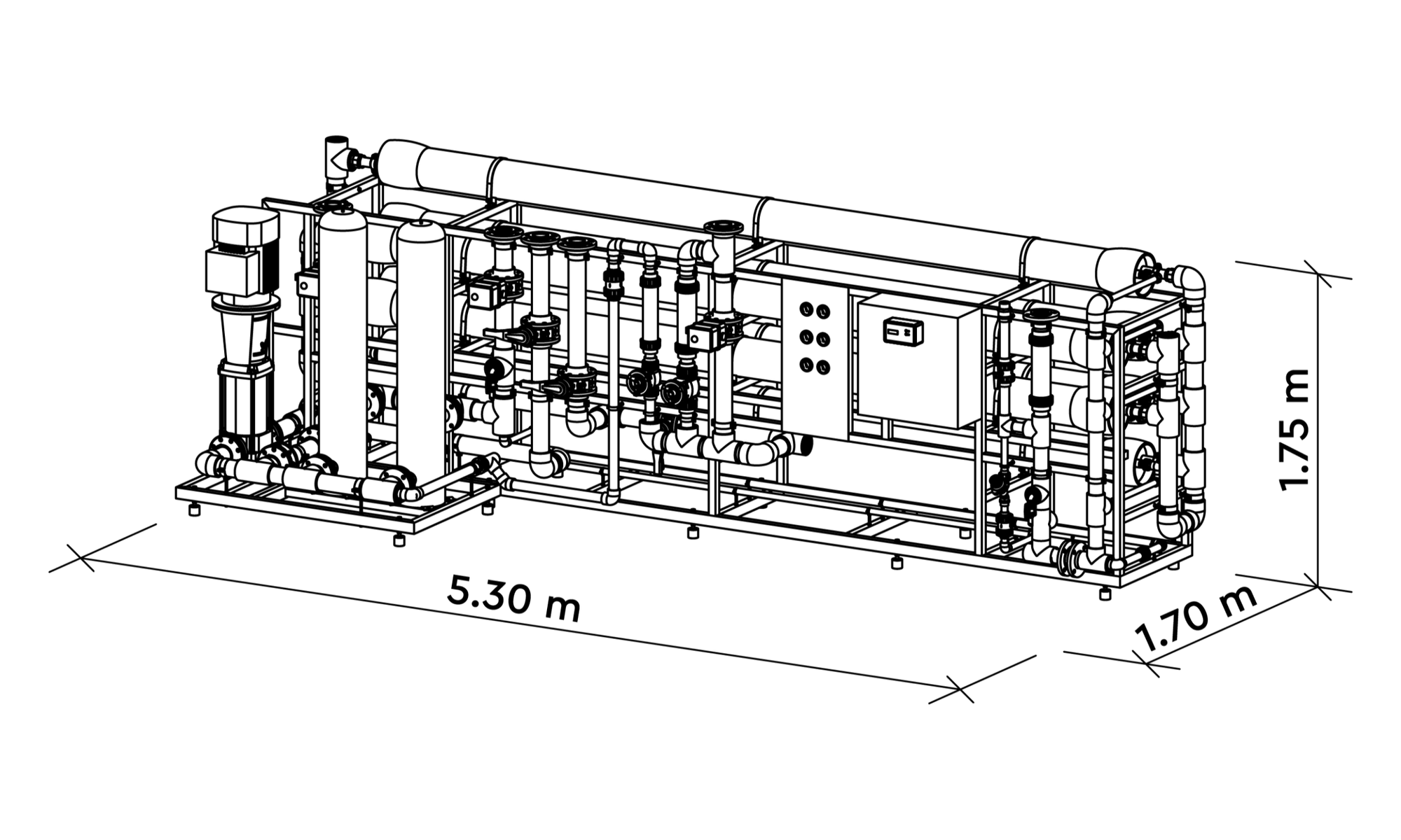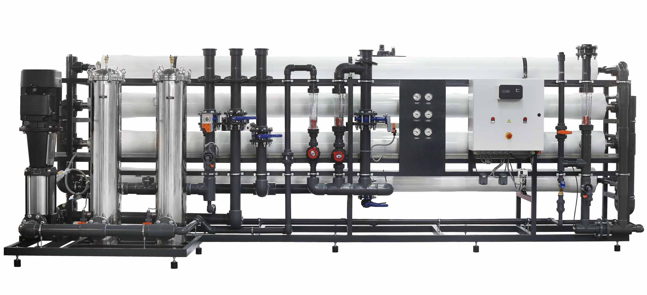 - Universeller Systemaufbau ermöglicht Anschlussmöglichkeiten von Permeatspülung und Rohwasserverschneidung