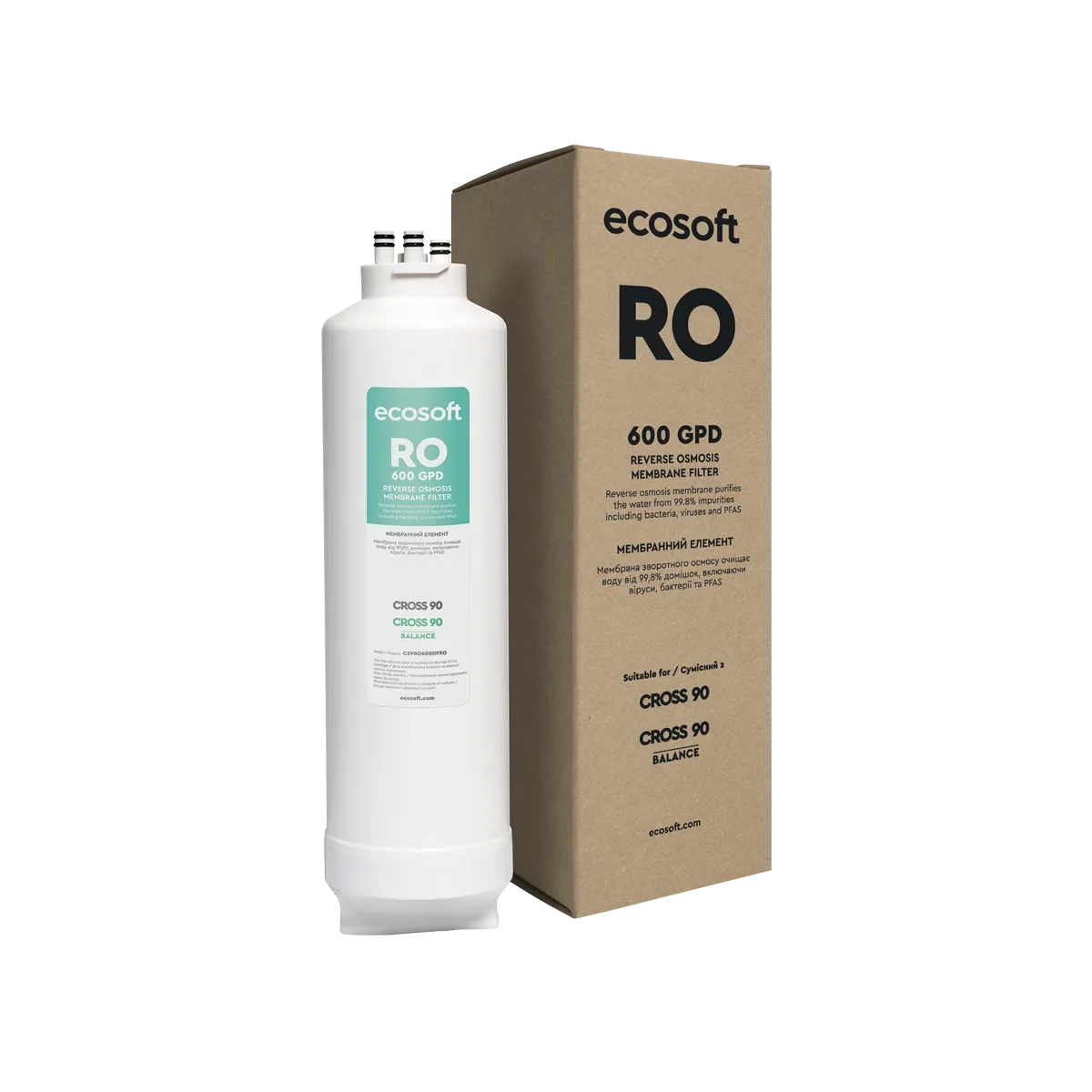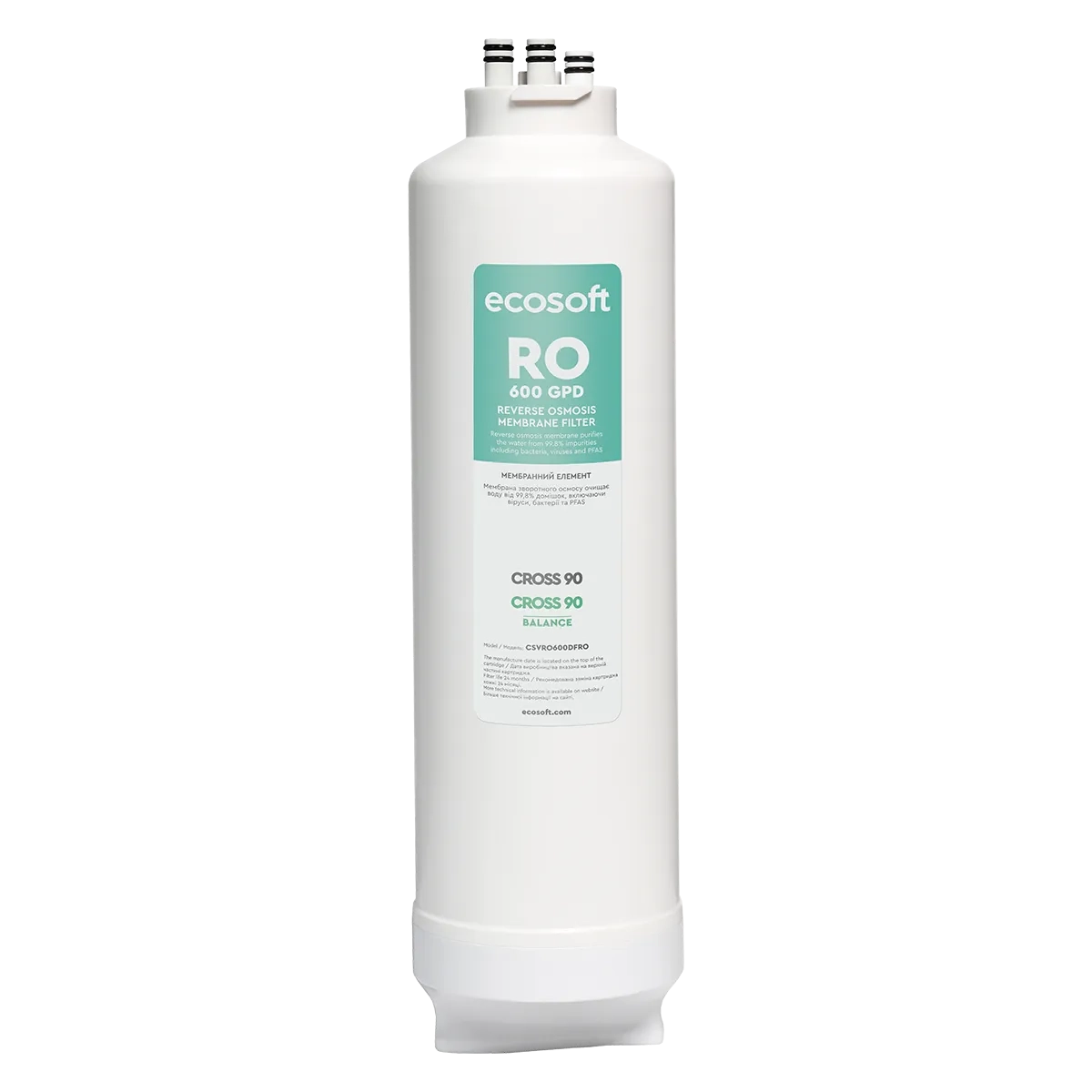 Das Ecosoft 600 GPD Membranelement für die CROSS 90 reinigt Wasser besonders effektiv und entfernt bis zu 99,8 % der Verunreinigungen – darunter Bakterien, Viren und PFAS.