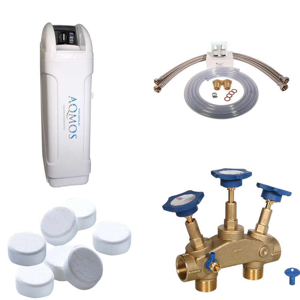 Die Wasserenthärtungsanlage Aqmos BM-40 ist für Haushalte bis zu 4 Personen ausgelegt und enthärtet bei 10°dH Eingangswasserqualität bis zu 4000 Liter Wasser pro Regenerationszyklus. Die Aqmos BM-40 funktioniert nach dem Ionenaustausch-Verfahren, d.h. sie tauscht die „Härtemineralien“ Calcium (Ca2+) und Magnesium (Mg2+) anteilig durch Natrium-Ionen (Na+) aus. Der Kalk wird somit entfernt und das Ergebnis ist weiches Wasser.