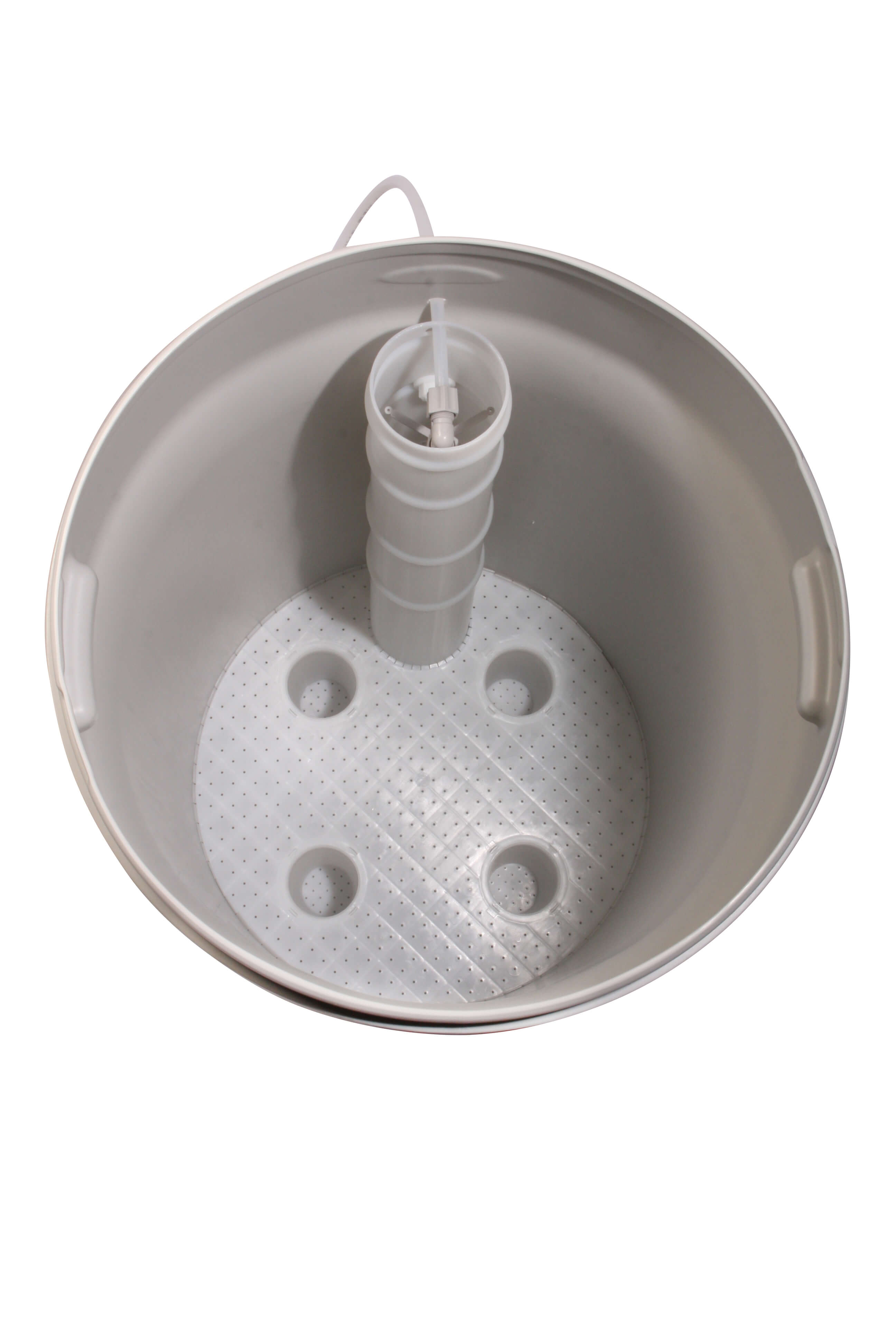 Die Aqmos CMX-200 besteht aus zwei getrennt stehenden Komponenten, der GFK-Druckflasche sowie einem PE-Solebehälter. Der aus Glasfaser verstärktem Kunststoff gefertigte Drucktank ist mit einem hochwertigen Ionenaustauscher-Harz gefüllt. Der separat stehende PE-Solebehälter zur Solebereitstellung (Kochsalzlösung) kann ein Salzvorrat von max. 120 kg aufnehmen. Er besitzt ein Fassungsvermögen von 145 Litern und integriert ein Siebboden, Solerohr mit Deckel, Sicherheits-Schwimmerventil, Überlaufwinkel und Soleansaugschlauch. Komplettiert wird die Anlage durch ein wassermengengesteuertes Ventil CLACK WS 1 CI, welches auf der GFK-Druckflasche montiert ist.